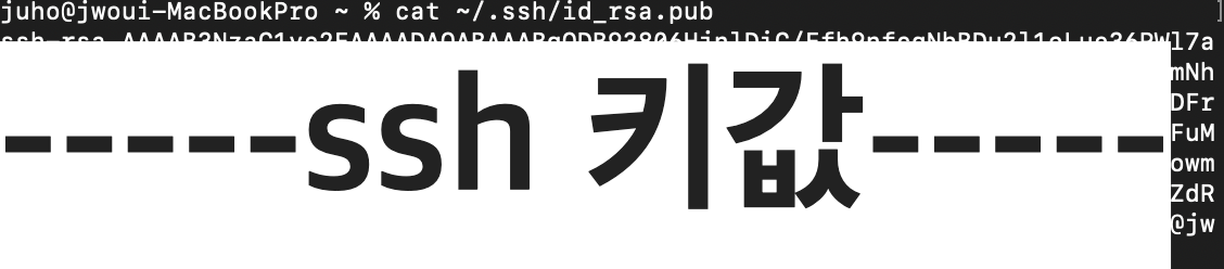 다시 입력해주면 ssh 키값을 확인해 볼 수 있다.