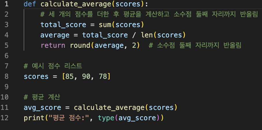 3개의 점수의 평균을 내는 함수 작성(자바스크립트로 점수 저장 후 평균을 계산하는 거로 진행될 예정)