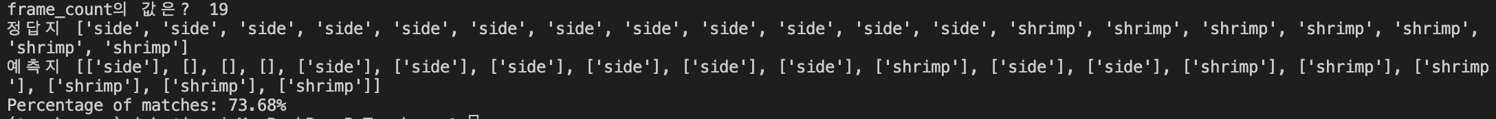 총 19장의 이미지를 측정하였고 정확도가 73.68%로 나왔습니다.
