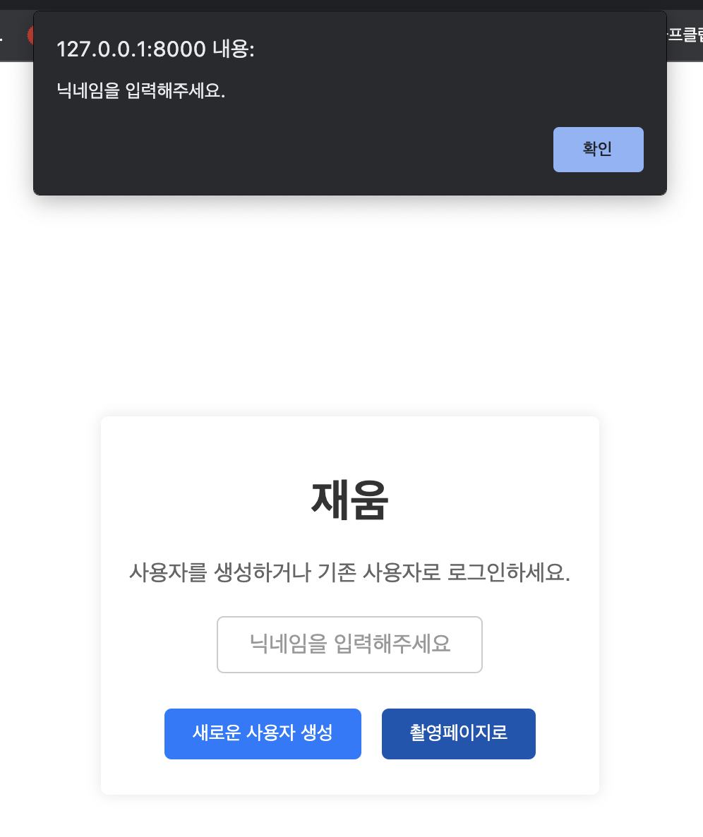 home.js에 닉네임을 입력하지 않으면 촬영페이지에 넘어가지 않도록 수정하겠습니다.