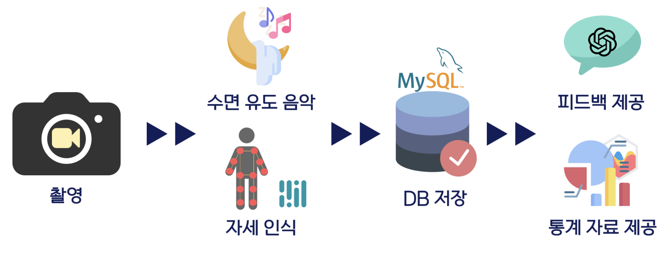 - 기존 수면 어플들은 물리적 통증의 원인을 파악하기 어려움, 이에 따라 AI 영상인식을 활용하여 원인을 파악하고자 함