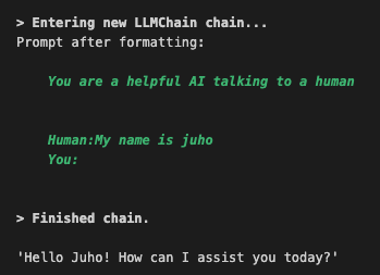 1. LLM chain (chain에 verbose=True를 통해 디버깅 가능 )