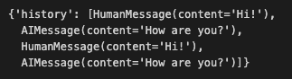 memory.save_context({"input": "Hi!"}, {"output": "How are you?"})