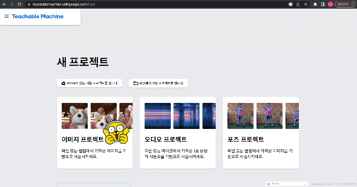 크롬에서 티처블 머신 검색 후 들어가기