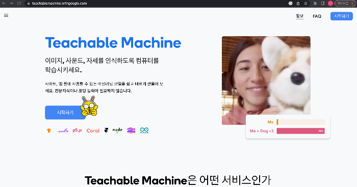크롬에서 티처블 머신 검색 후 들어가기