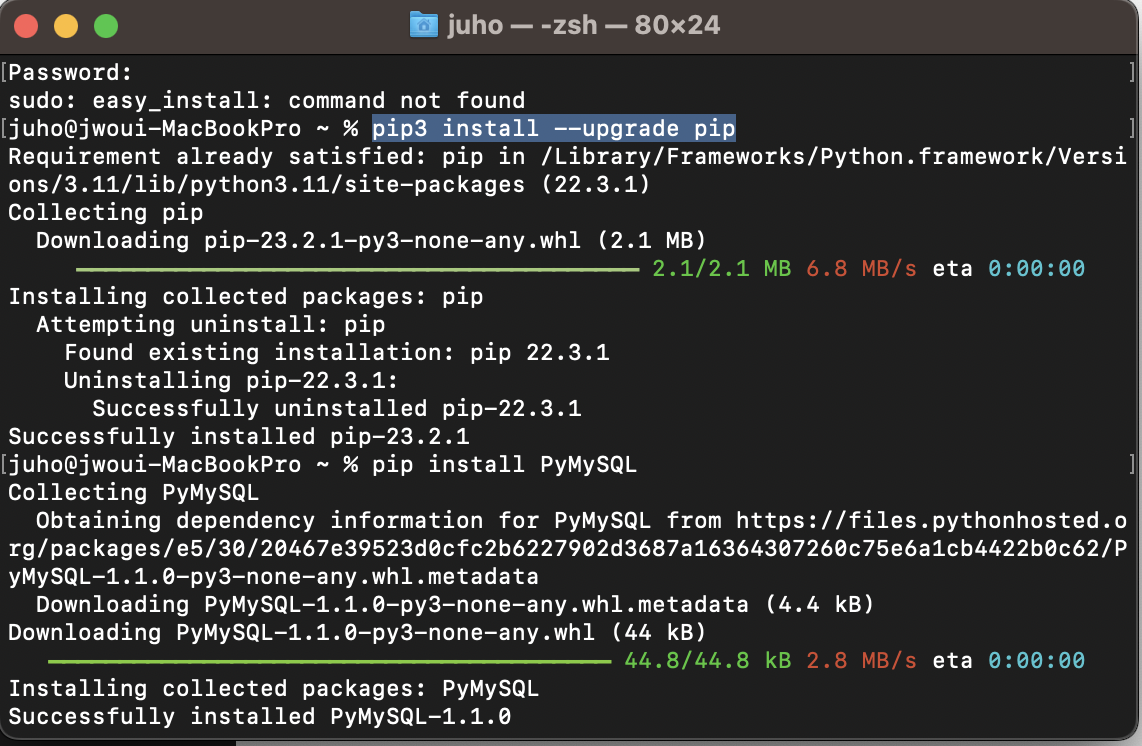 다시 한번 PyMySQL을 설치 명령어를 넣어주니 install되었다!